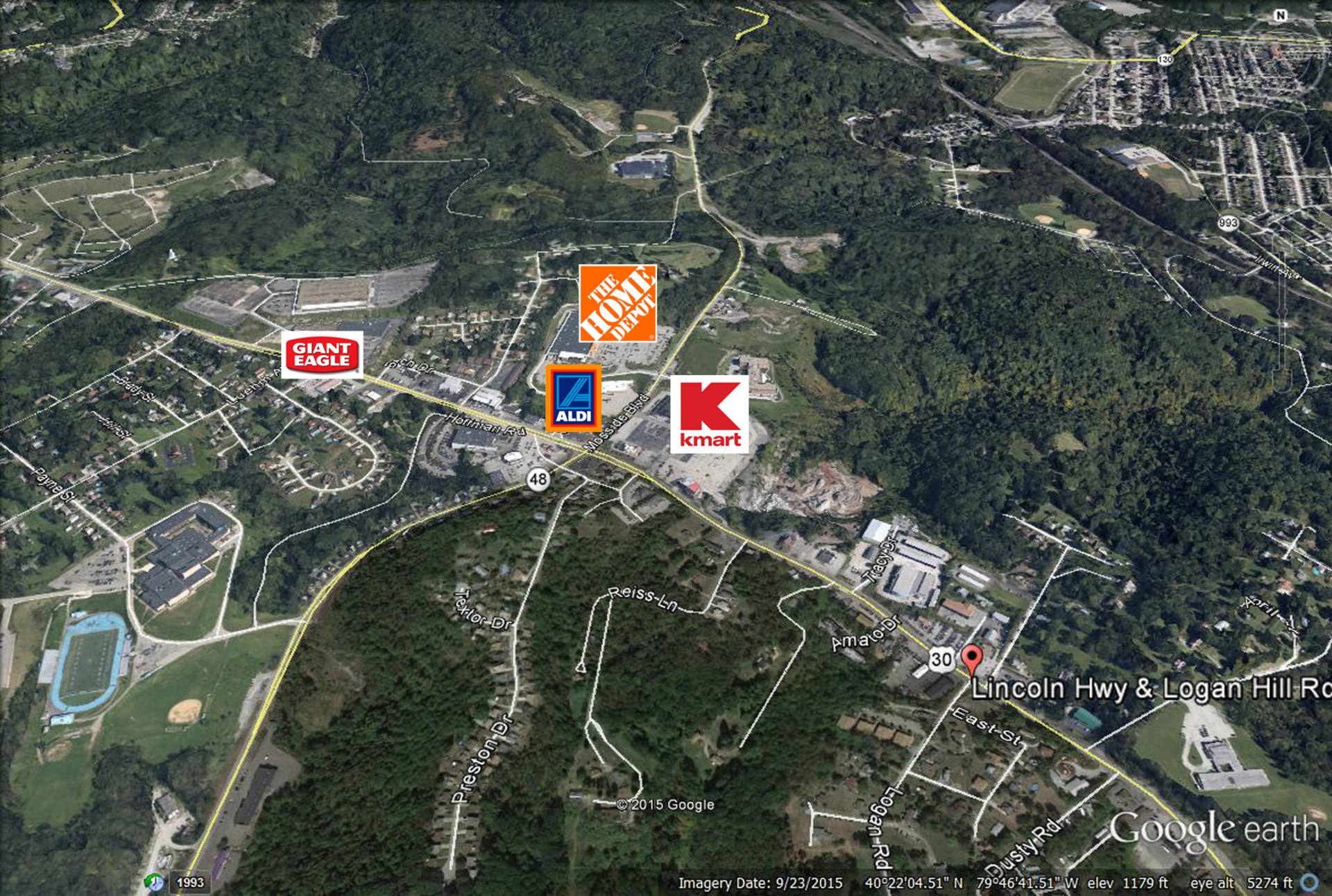 Intersection of Lincoln Highway (Route 30) and Logan Hill Road